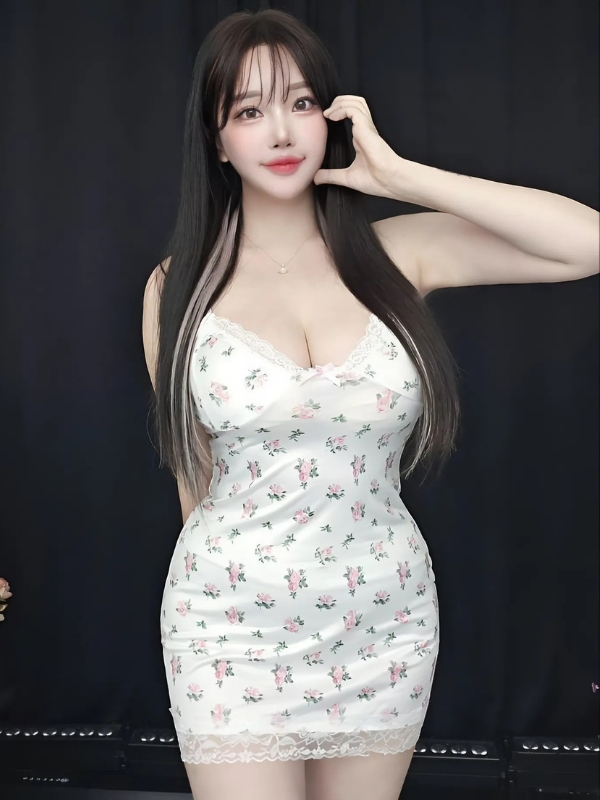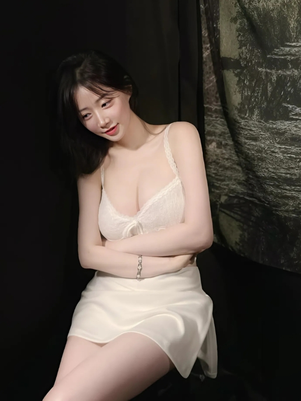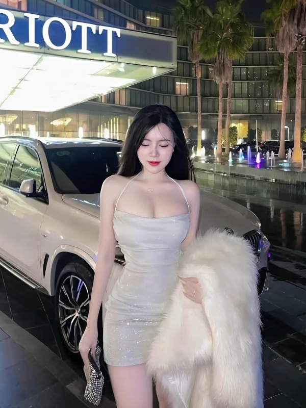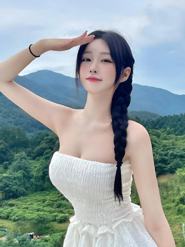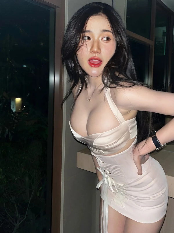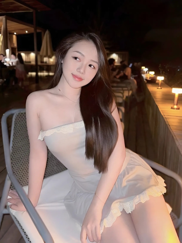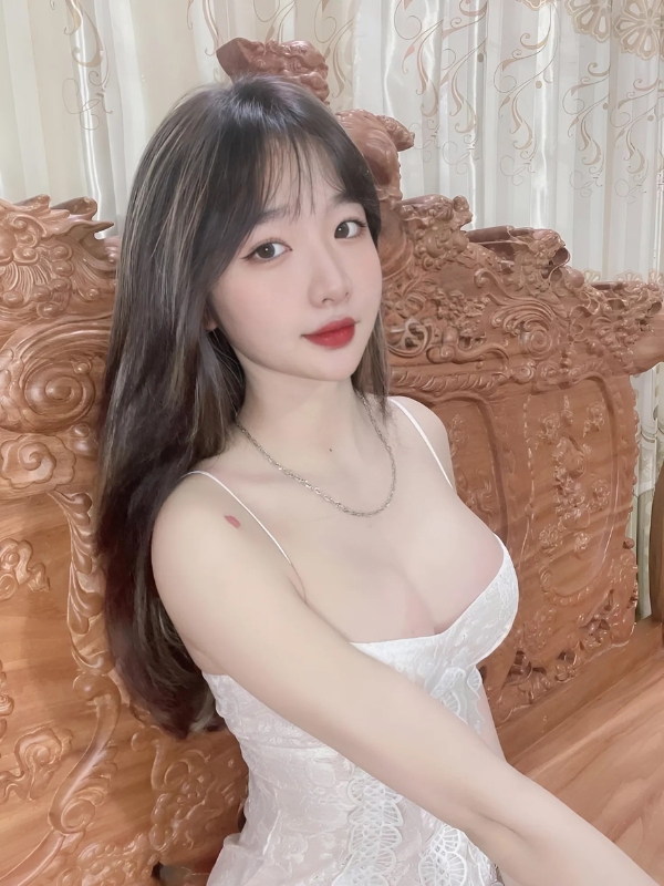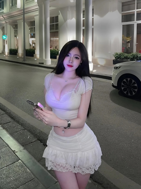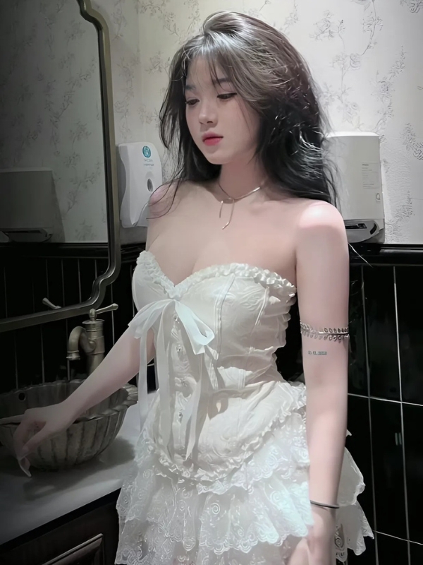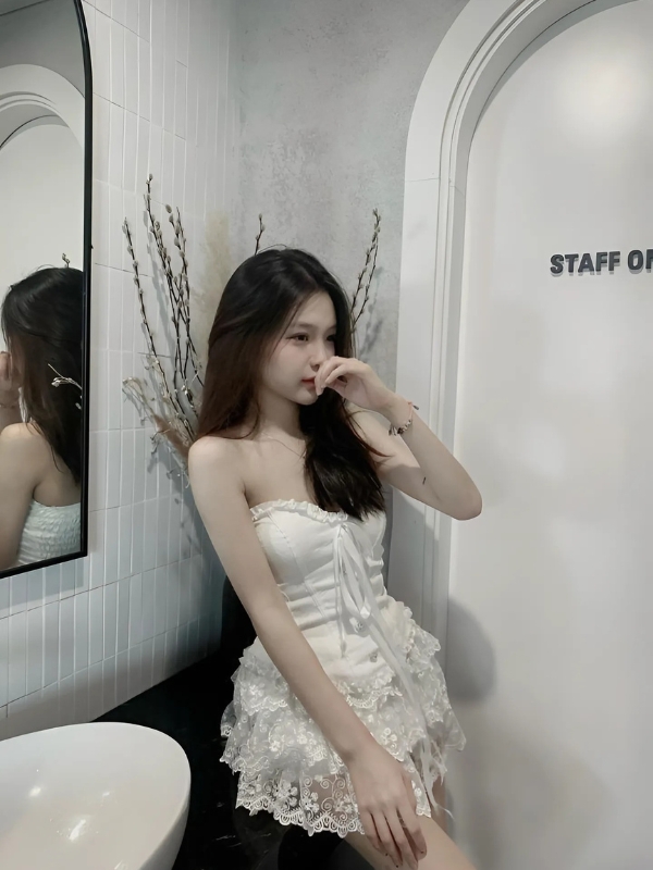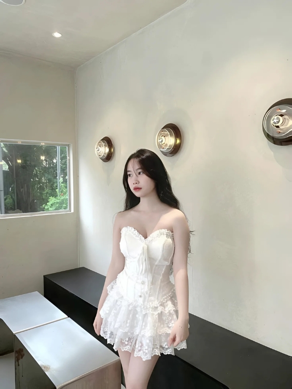 Gái xinh mặc váy trắng cúp ngực
