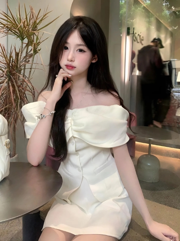 Váy trắng lệch vai, thần thái tự tin